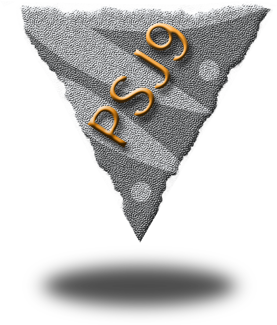Started off with a blank slate, created a three-sided polygon, used the pen tool to cutout portions then filled them with a lighter shade of grey. Seemed like something was missing so I added some small ellipses. Merged the layers, added some texture and some bevel.